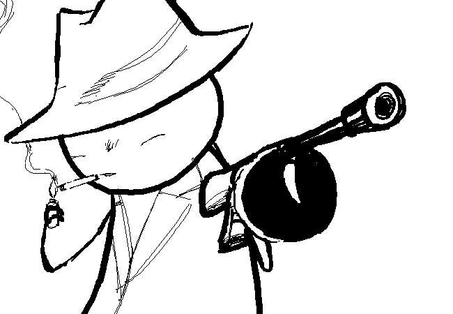 - Level 2 - PS shoots his enemies with the tommy gun while smoking a cigarette. Used