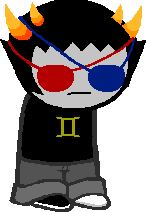 " and proceeds to place his red/blue glasses crookedly (and upside-down) over Feferi's. Like in the old timeline, he piloted the meteor and became half-dead, and stayed behind with Aradia in the dream bubbles.