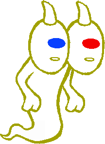 Because of his zodiac sign of Gemini, he has a penchant for bifurcation and duality, often splitting things into red and blue. In keeping with his zodiac theme, his appearance emphasizes duality. He has two sets of horns instead of one, glasses with hetero-chromatic lenses, and two mismatched shoes. In addition, the trolls' and kids' Universes are seen in his shades. Strangely enough, his actual eyes seem to be the same color as his glasses, and he is gifted with "vision twofold," the ability to see the future and the present.